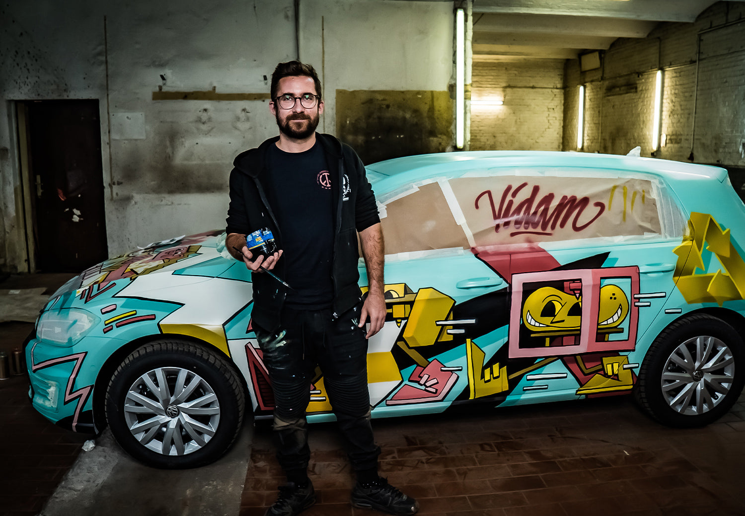 Vidam is a graduate communication designer, visual artist, and illustrator who has been living in Berlin for over 20 years. He is part of the street art crew THE WEIRD, and his name means “cheerful” in Hungarian. In recent years, he has developed his own distinctive visual language, which he playfully calls “cubist pop surrealism.” The subject matter of his oeuvre primarily revolves around diary-like illustrated experiences from his own life. His main sources of inspiration are remarkable personal moments, life with his child, contemporary society, rave culture, and the occasional escape into nature. In addition to his work as a painter and muralist, he also creates illustrations for international clients. His second great passion is music! He loves celebrating electronic dance music, a perfect contrast to his life as an urban artist and illustrator.
