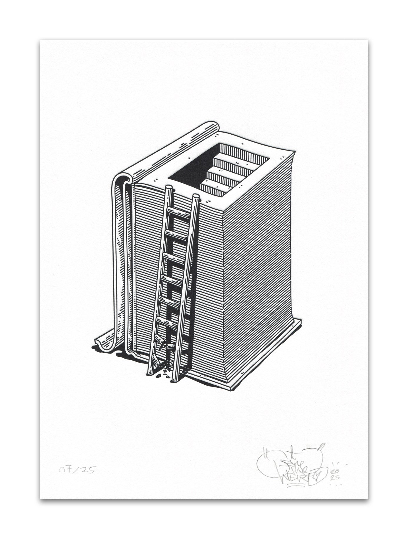 "First Steps" is a letterpressprint by Cone The Weird from 2025