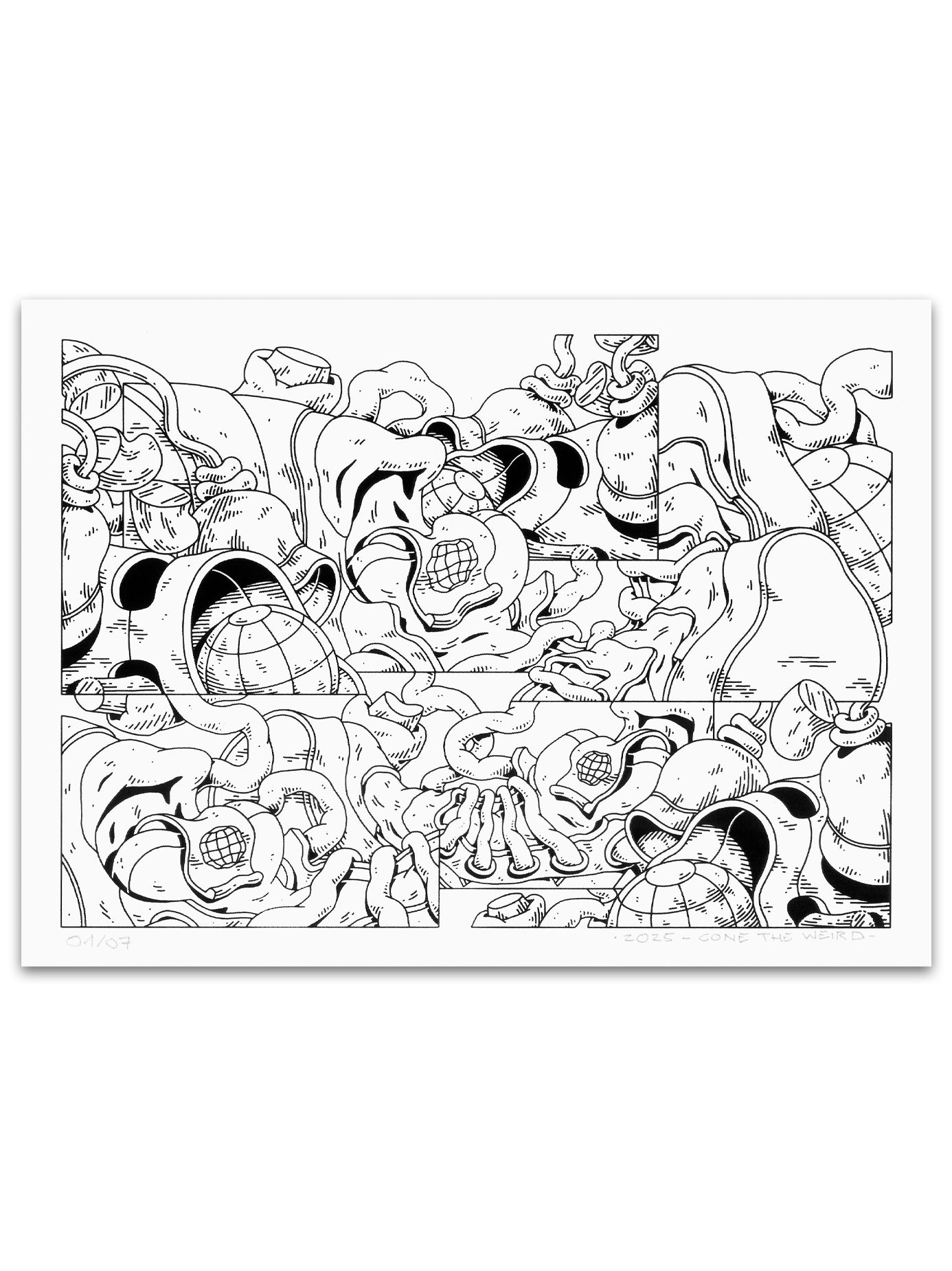 "First Steps" is a letterpressprint by Cone The Weird from 2025