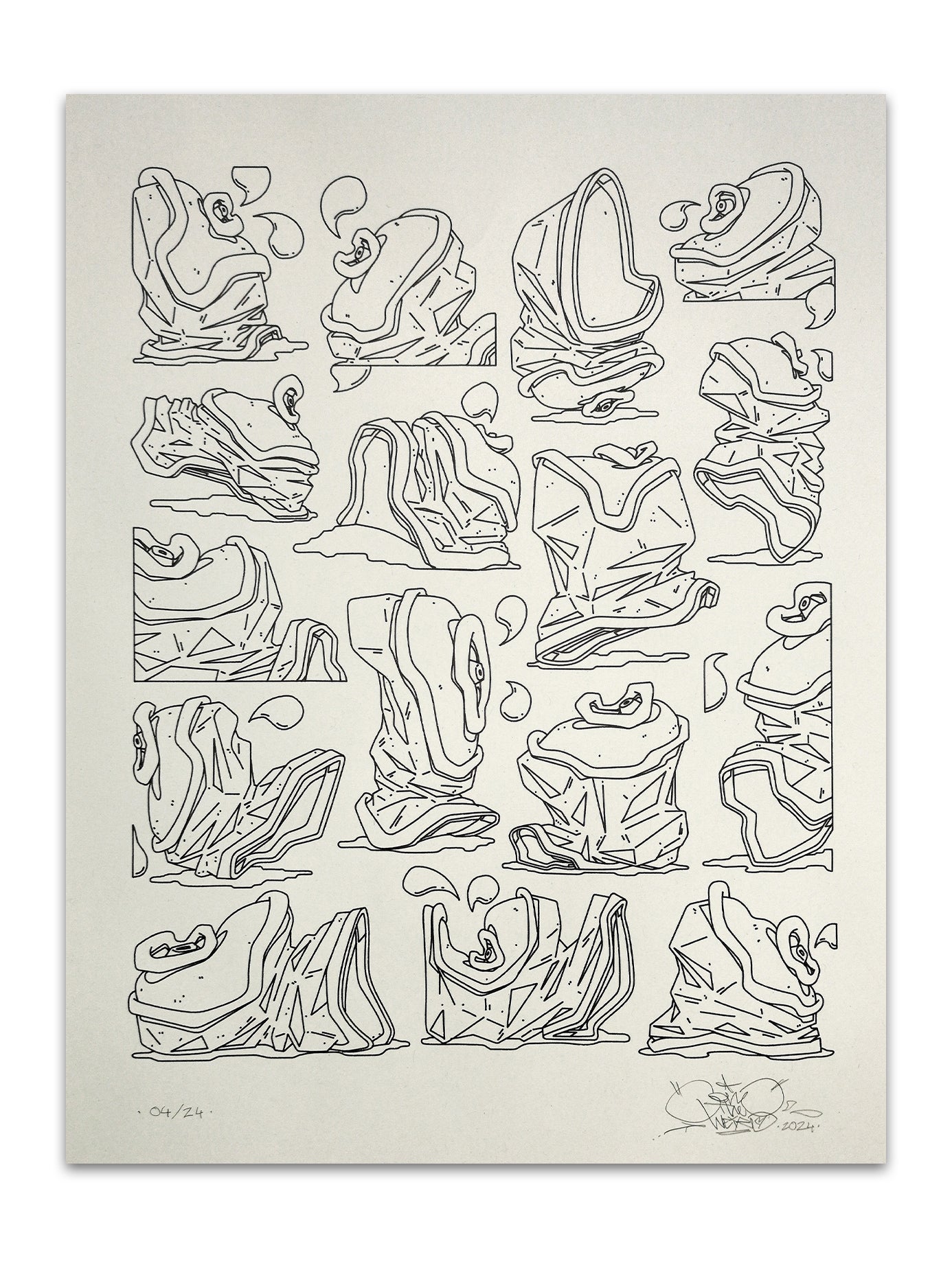 "Trashcans" is a Pen-Plott Drawing by Cone The Weird from 2024